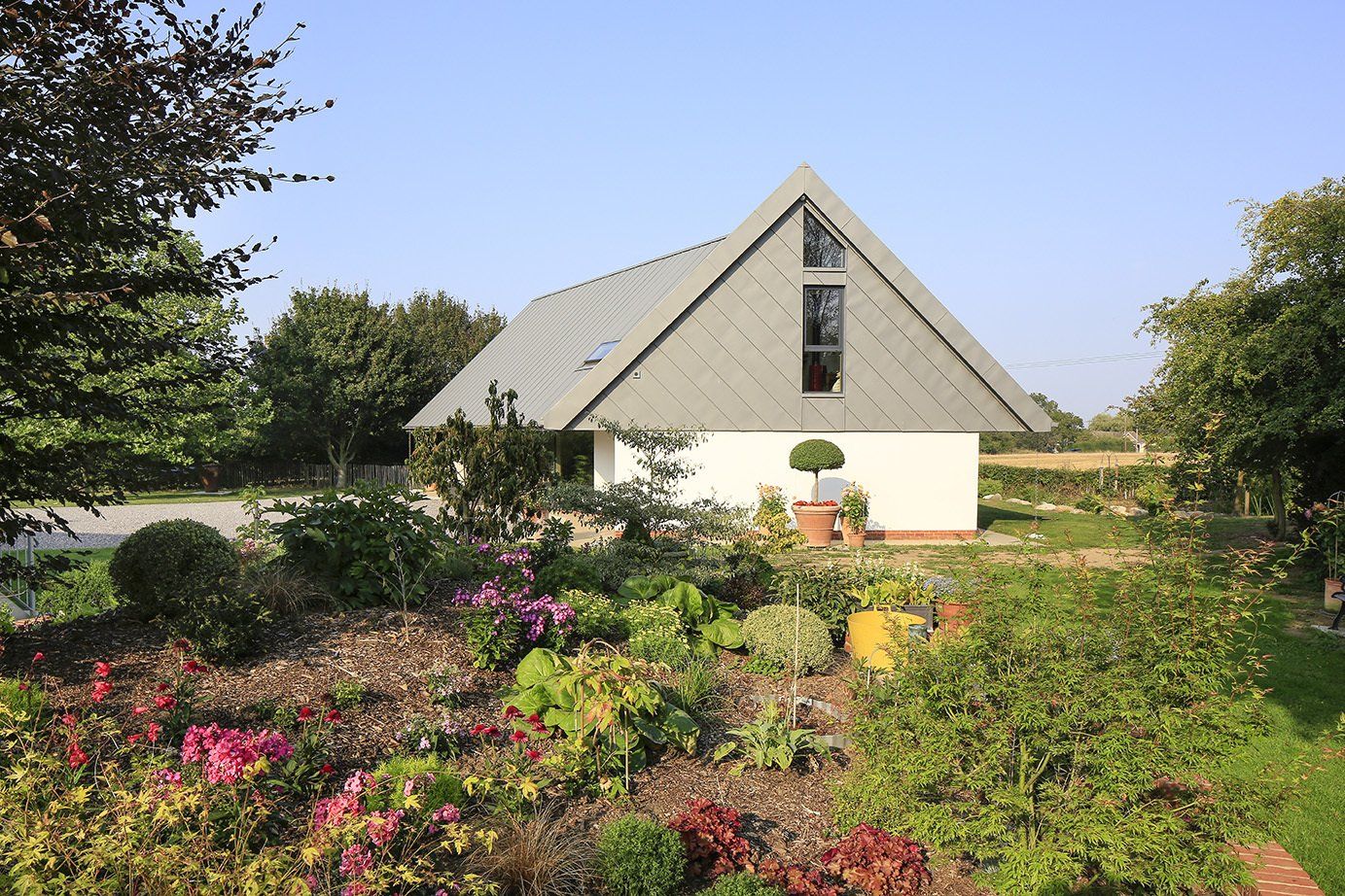 This recently completed dwelling won the Sustainability Award in the Maldon District Conservation & Design Award Scheme 2019 and was Highly commended for design. The house is a modern interpretation of the local vernacular one & a half storey house form.